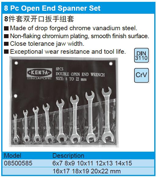 8件套公制双开口扳手组