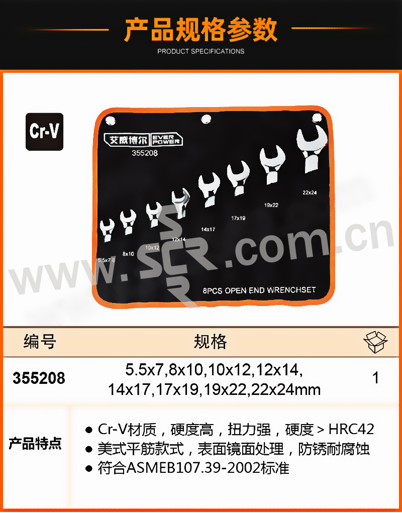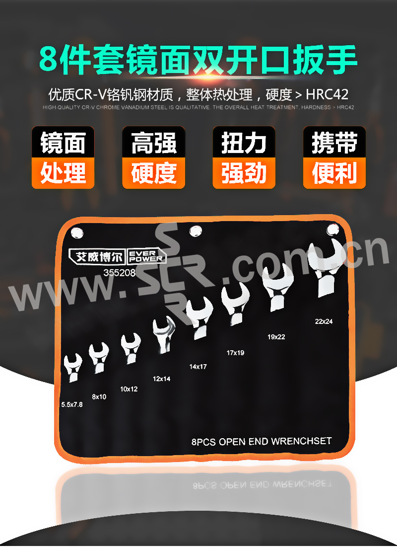 EVERPOWER/艾威博尔 8件套精品镜面双开口扳手 355208 8件 1套