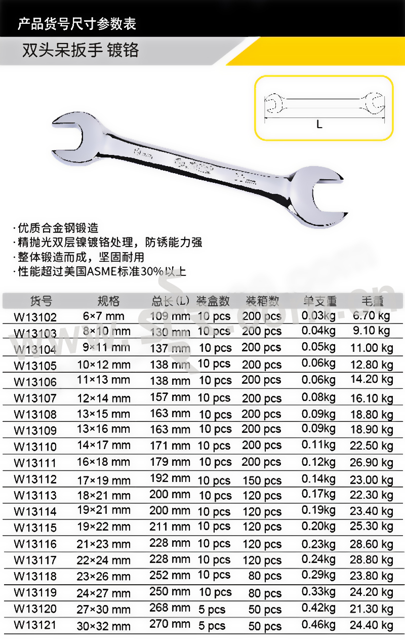 公制双开口扳手