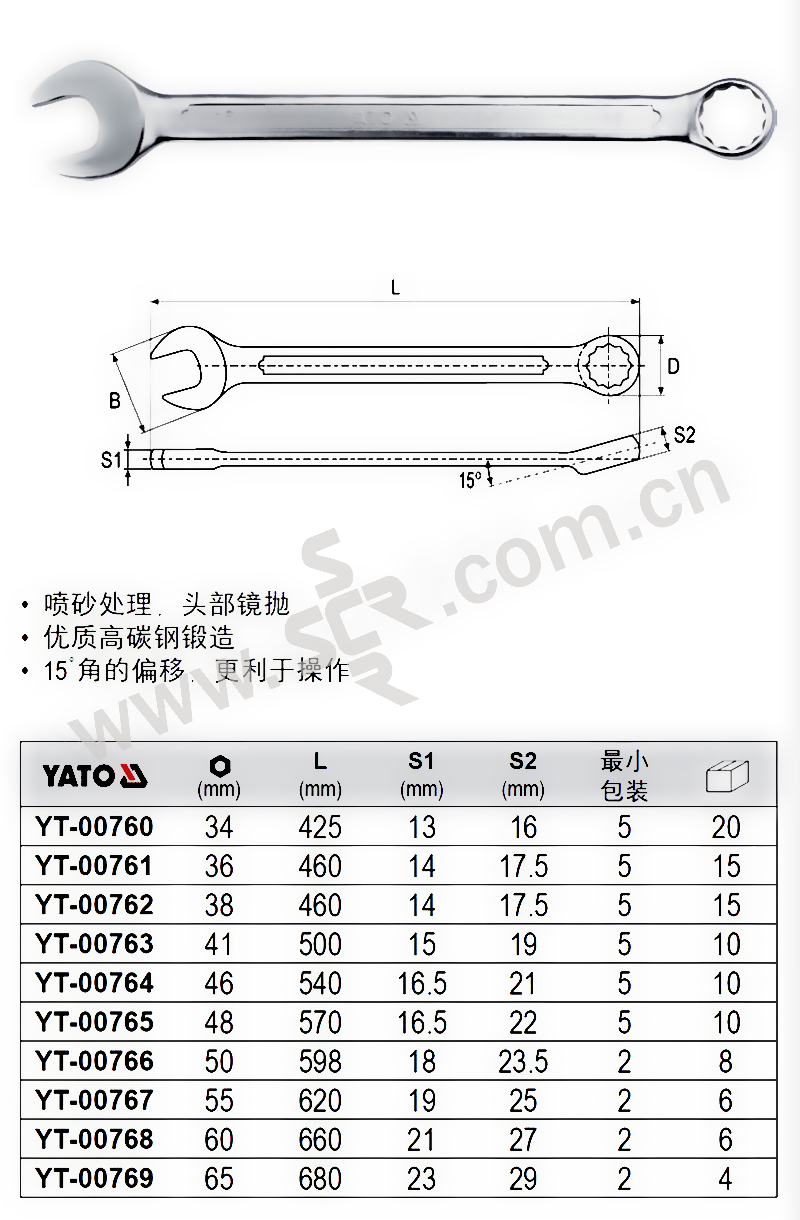 YATO/易尔拓 大规格两用扳手 YT-00760 34mm 1把