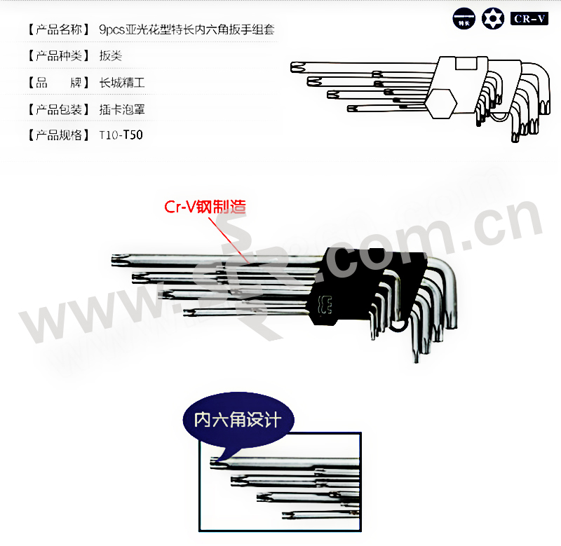 GREATWALL/长城精工 亚光花型特长内六角扳手套装 GW-338109 9件 T10-T50 1套