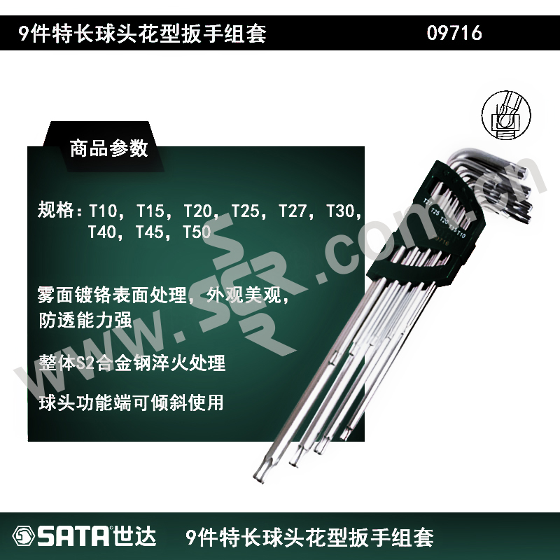 SATA/世达 特长球头花形扳手组套 SATA-09716 9件 T10-T50 S2钢 1套