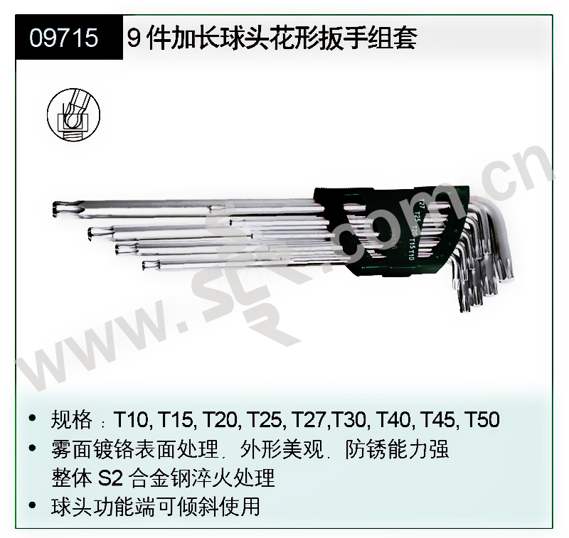 SATA/世达 加长球头花形扳手组套 SATA-09715 9件 T10-T50 S2钢 1套