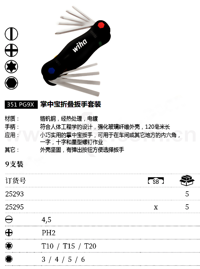 WIHA/威汉 掌中宝折叠一字十字星形内六角扳手套装 25293 351PG9X 9件 1套
