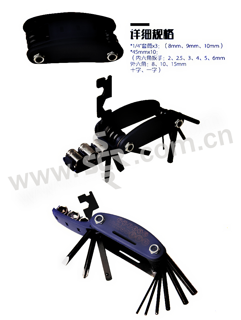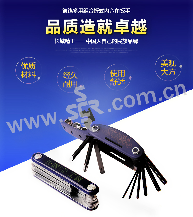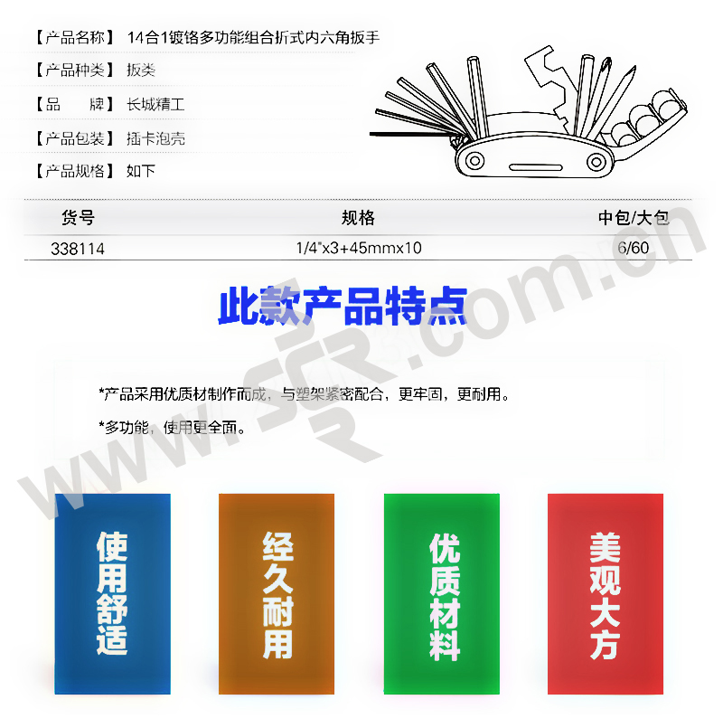 GREATWALL/长城精工 镀铬多用组合折式内六角扳手 GW-338114 14合1 1/4"套筒3件+内六角10件 1套