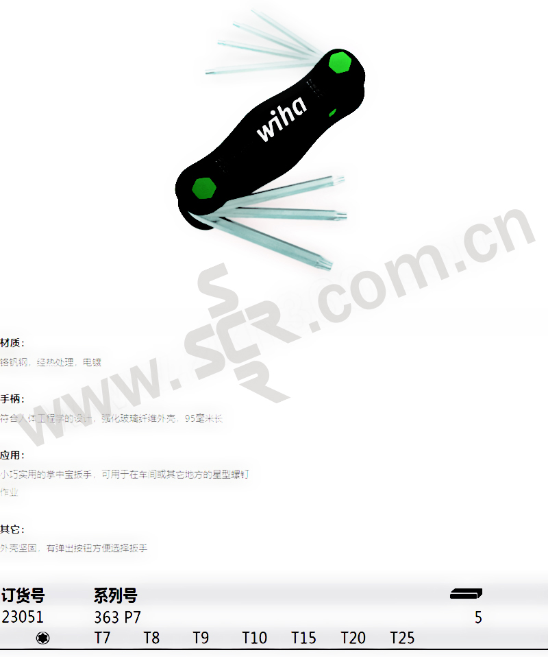 WIHA/威汉 363P7系列折叠式星型扳手套装 WIHA-23051 7件 T7-25 镀铬 1套