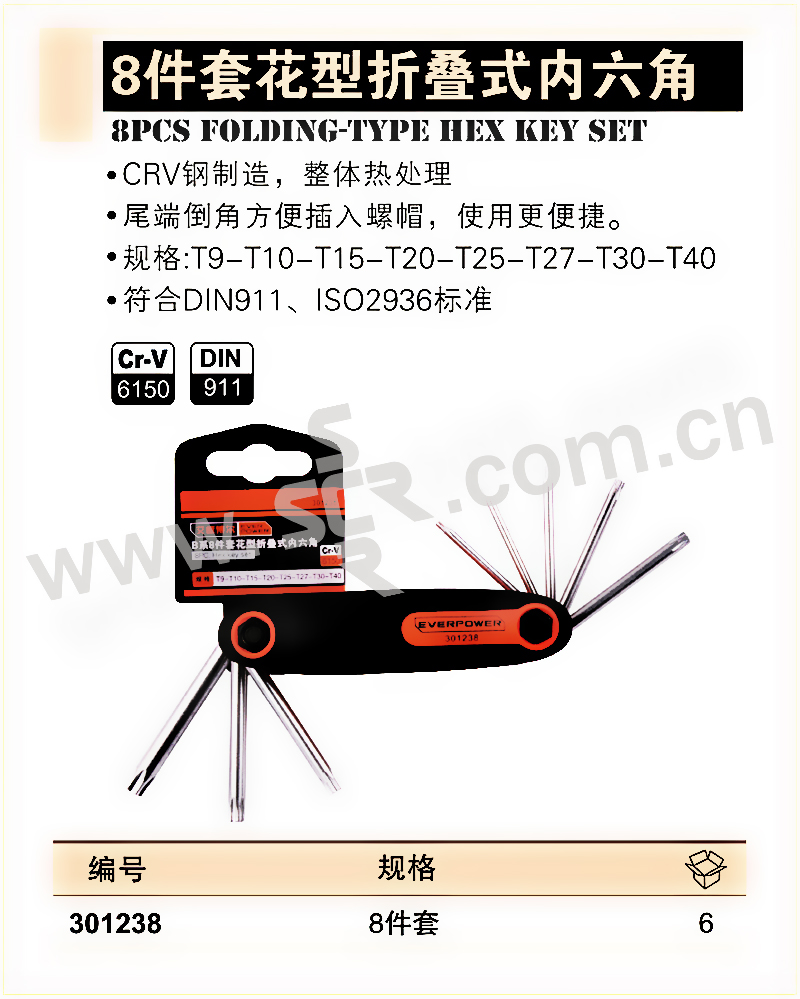 EVERPOWER/艾威博尔 8件套花型折叠式内六角 301238 T9~T40 8件 1套