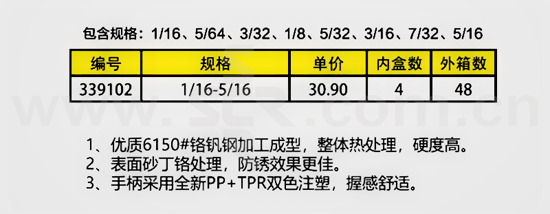 TS/拓信 8件折叠英制内六角扳手 339102 1/16~5/16" 1套