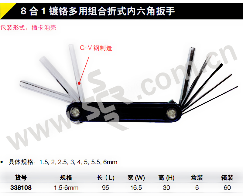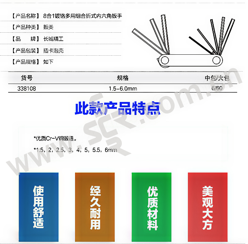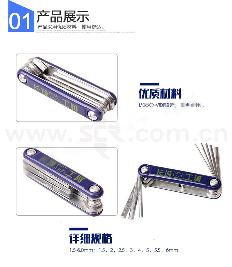 GREATWALL/长城精工 镀铬多用组合折式内六角扳手 GW-338108 8合1 1.5-6.0mm 1套