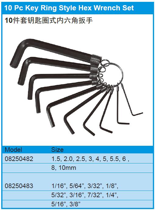 10 Pc Key Ring Style Hex Wrench Set