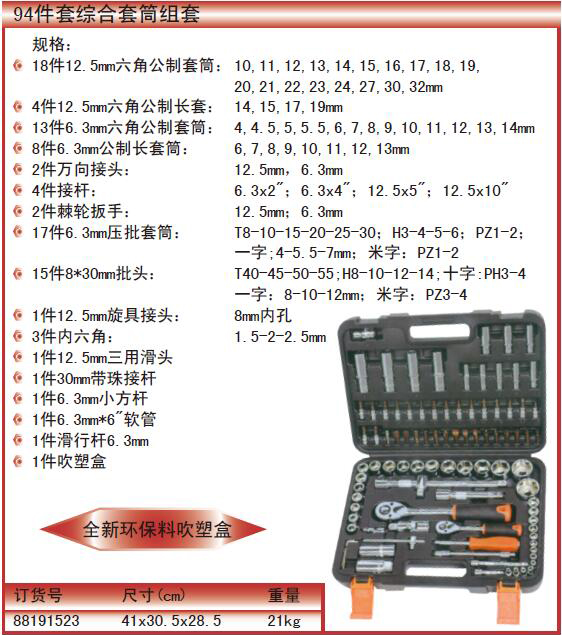 ·18件12.5mm六角公制套筒:10,11,12,13,14,15,16,17,18,19,20,21,22,23,24,27,30,32mm