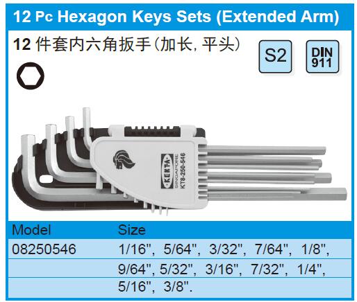 12 Pc Hexagon Keys Sets (Extended Arm)