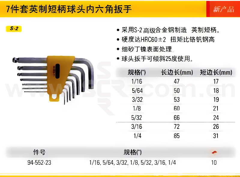 STANLEY/史丹利 7件套英制短柄球头内六角扳手 94-552-23 1/16~1/4" 1套