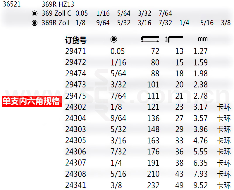 英制球头加长内六角扳手套装
