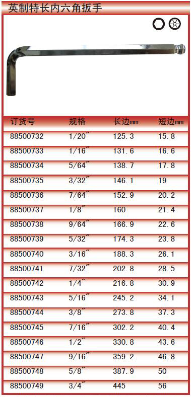 当前位置:首页 > 手工具 > 扳手 > 英制球头内六角扳手 > 英制球头特长内六角扳手