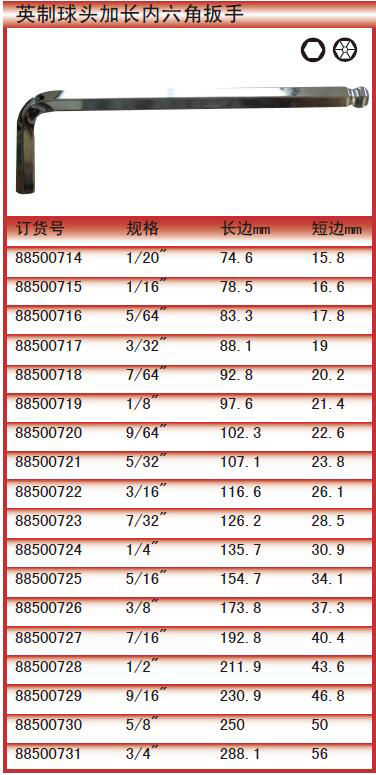 英制球头加长内六角扳手
