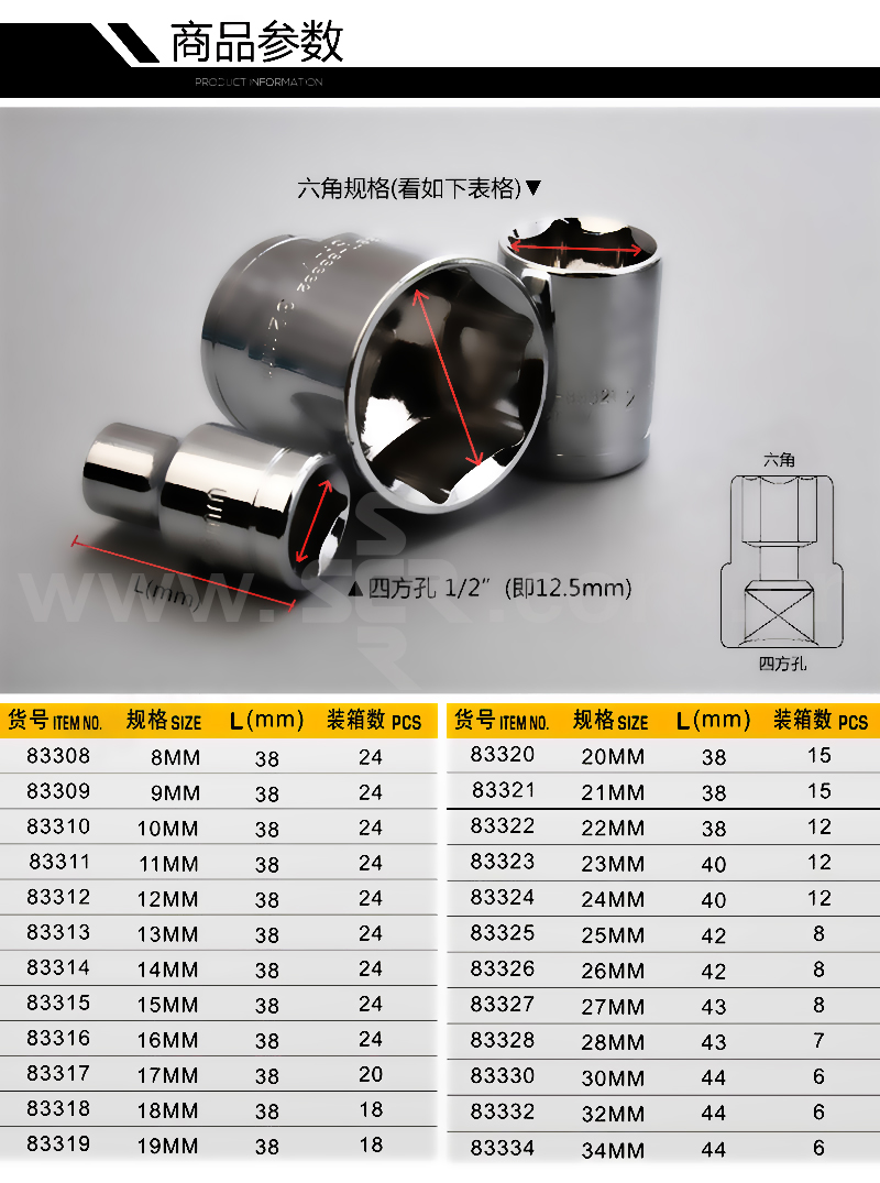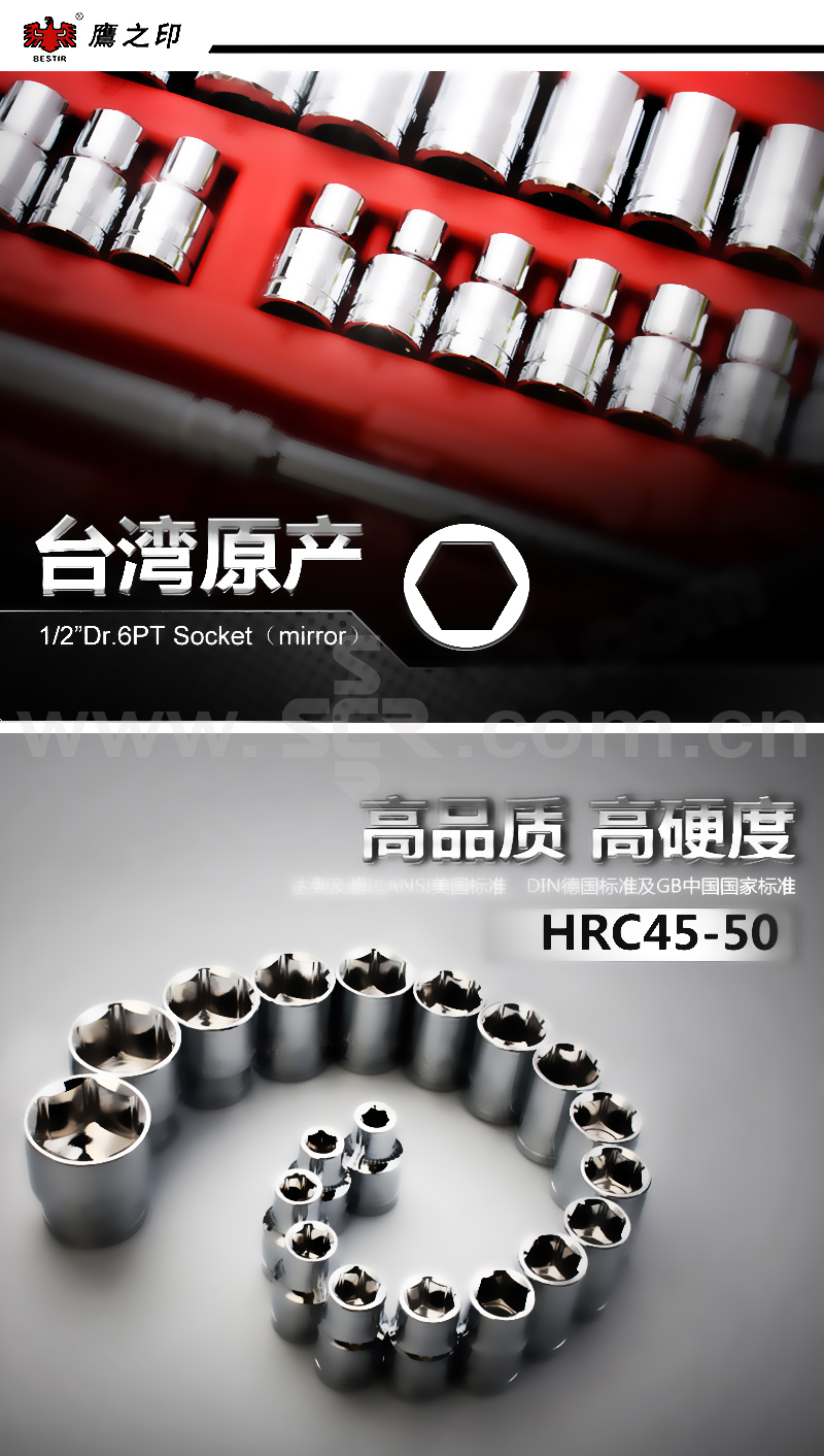 BESTIR/鹰之印 1/2"17mm镜面六角套筒CR-V LH-83318 Cr-V 1只