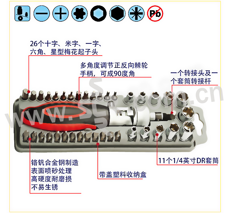 PROSKIT/宝工 棘轮套筒组 SD-2309 40件 4-13mm/PH0-PH3/SL3-8mm等 1套