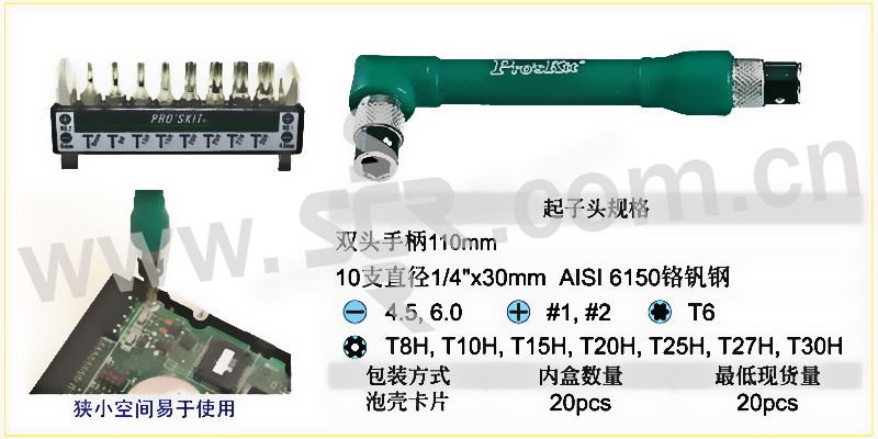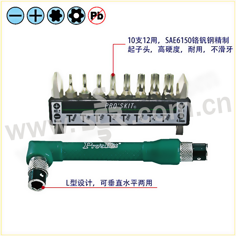 ·配合10支高硬度的铬钒钢精制批头,提供多功能使用。