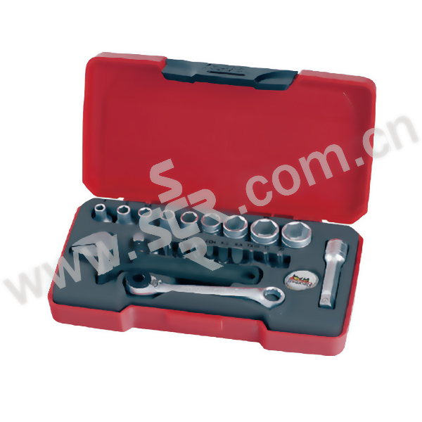 ·组套内包含9颗1/4" (二分)公制套筒、迷你棘轮扳手、接