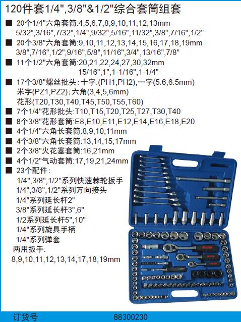 ·20个3/8"六角套筒:9,10,11,12,13,14,15,16,17,18,19mm