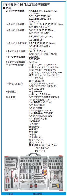 F22612 88300229 178 crv铬钒钢 FORANT / 178件套1/4" 1/2" 3/8"综合套筒组套 / 4-14mm 178 3185.44