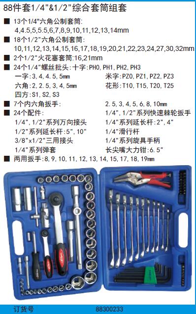 ·18个1/2"六角公制套筒: