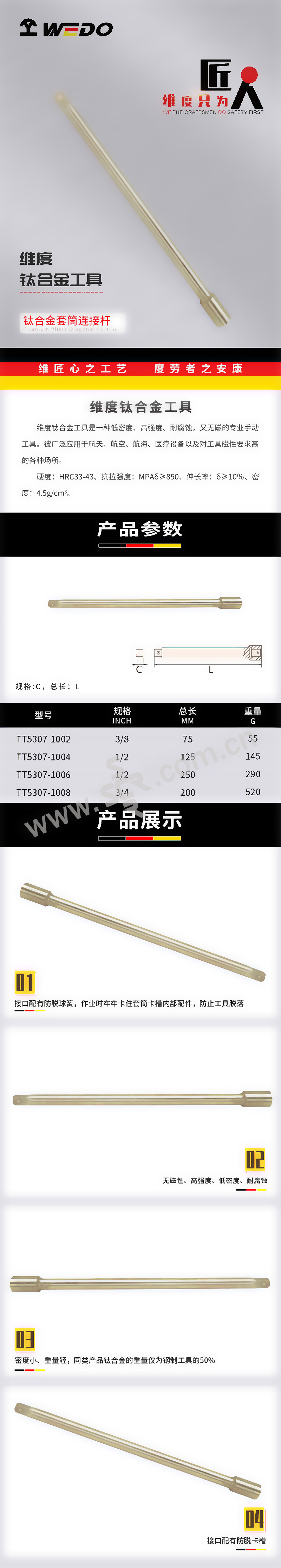 WEDO/维度 钛合金套筒连接杆 TT05307-1002 3/8"×75mm 1把