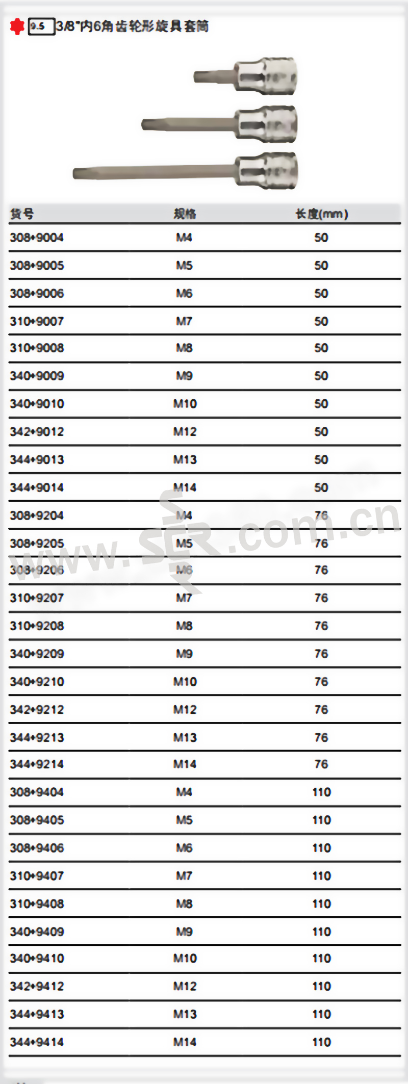 GENIUS/天赋 3/8"内六角齿轮形旋具套筒 308+9204 3/8×M4×80mmL 1个
