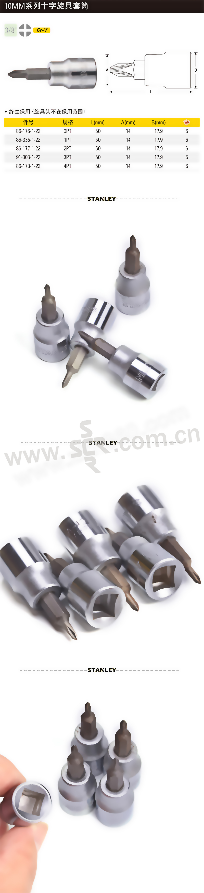 STANLEY/史丹利 10mm系列十字旋具套筒 86-176-1-22 1个