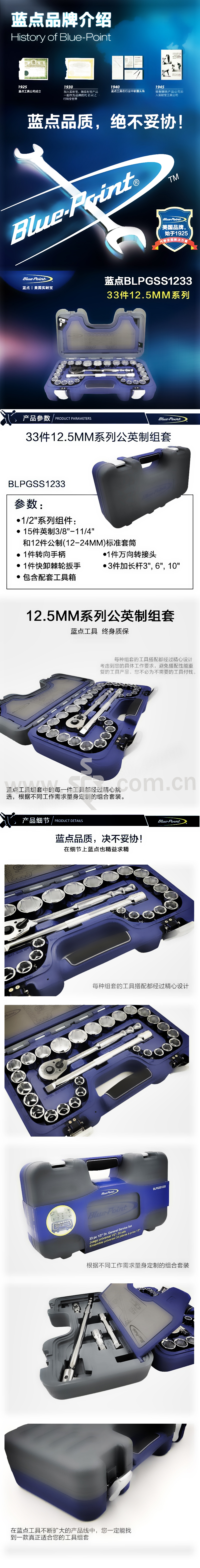 BLUE-POINT/蓝点 33件12.5mm系列公英制组套 BLPGSS1233 1套