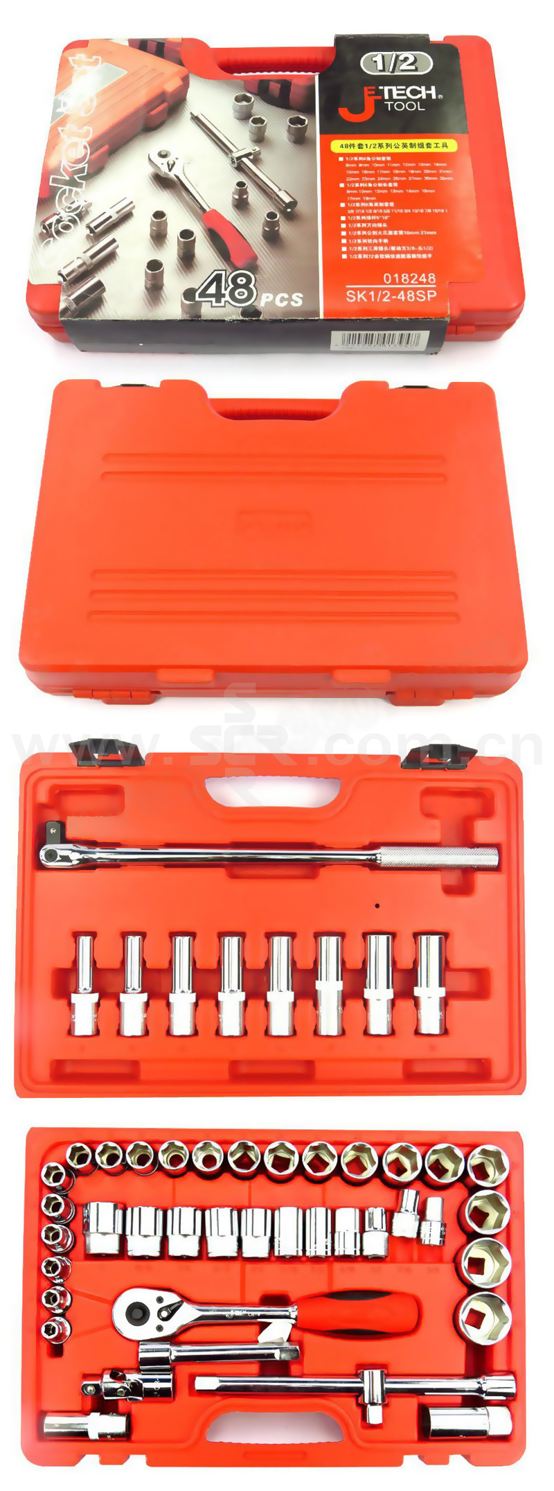 JETECH/捷科 1/2"系列公英制套筒套装(48件)吹塑盒 SK1/2-48SP 48件 8-32mm&3/8"-1" 1套