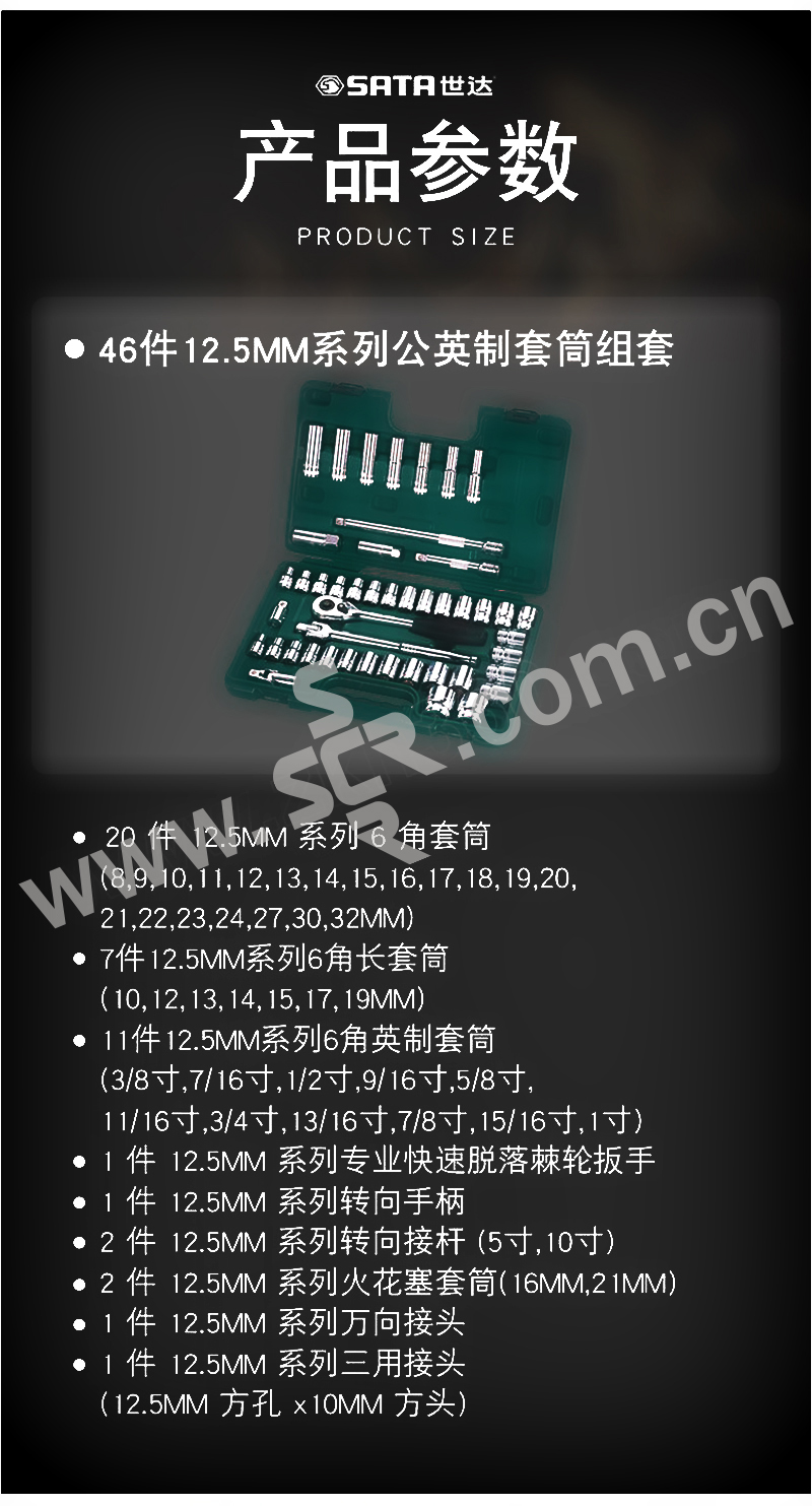 SATA/世达 12.5mm系列套筒组套 SATA-09006(升级款) 46件 1套