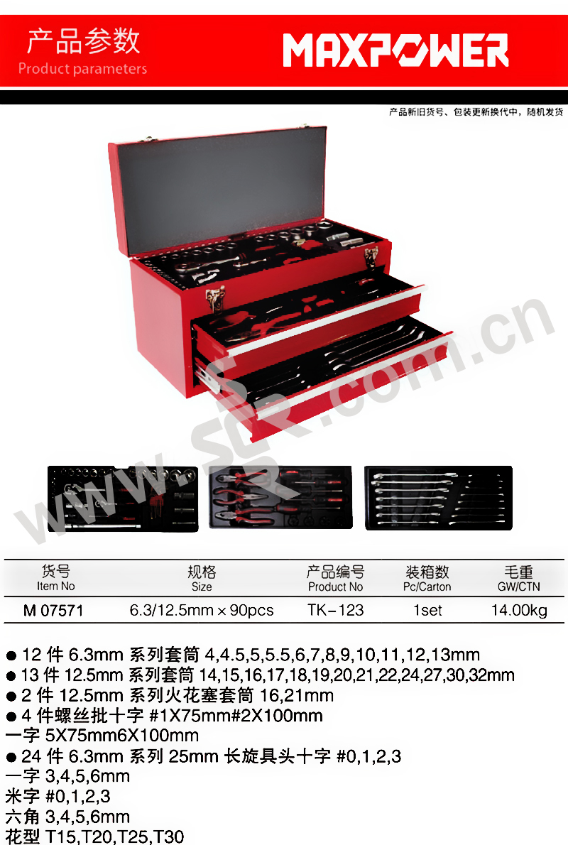 MAXPOWER/力钰 90件公制套筒组套 M07571 1套