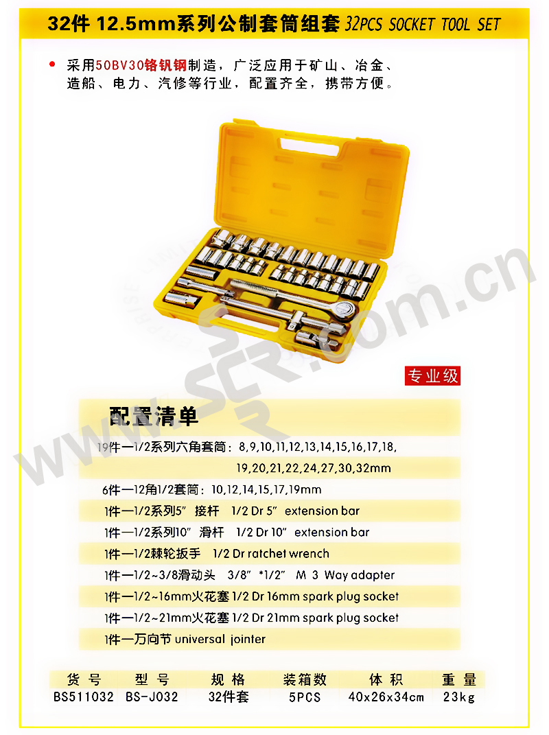 BOSI/波斯 12.5mm系列公制套筒组套 BS511032 32件 1套
