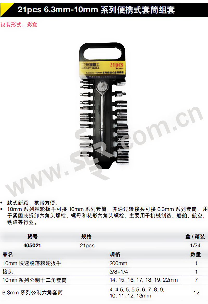 GREATWALL/长城精工 6.3×10MM系列便携式套筒组套 GW-405021 21件 4-22mm 1套