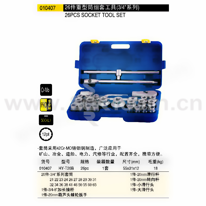 HOLD/宏远 26件套3/4重型套筒工具组套 HY-010407 1套