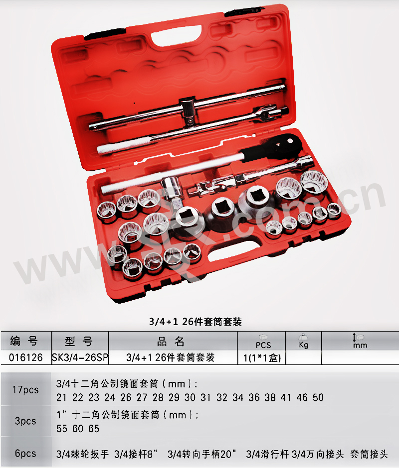 JETECH/捷科 3/4"×1"系列公制套筒套装(26件)吹塑盒 SK3/4-26SP 26件 21-50mm 1套