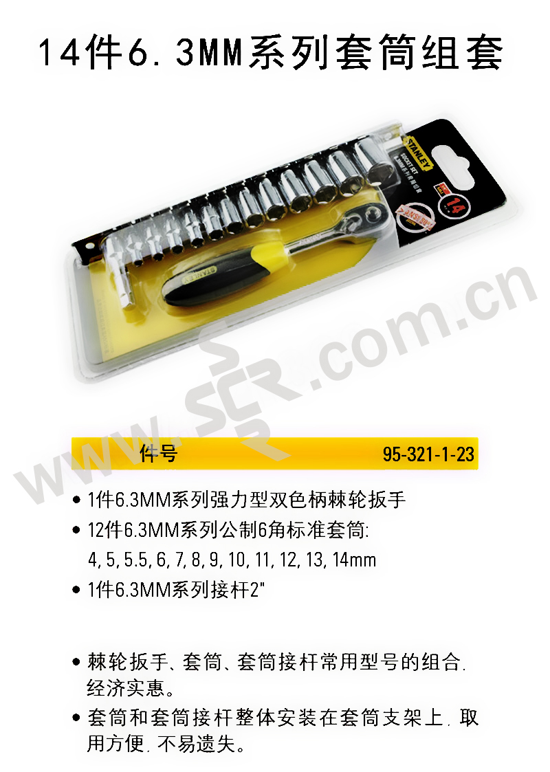 STANLEY/史丹利 6.3MM系列套筒套装 95-321-1-23 14件 4-14mm(塑架) 1套