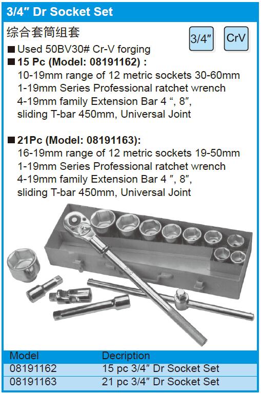 16-19mm范围的12个公制套筒19-50mm 1-19mm系列专业棘轮扳手 4-19mm家庭加长杆4″,8″, 滑动T形杆450mm,万向接头