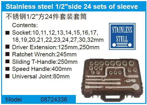 不锈钢1/2"方24件套装套筒 08724336 10~32mm 1套