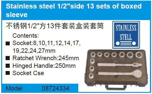 不锈钢1/2"方13件套装盒装套筒 08724334 8~27mm 1套