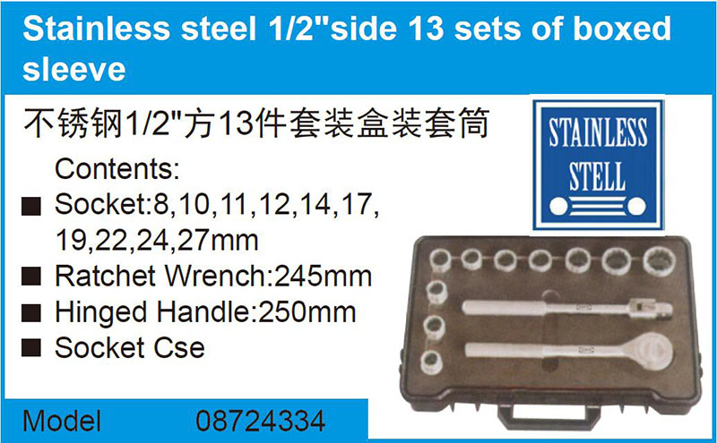 不锈钢1/2"方13件套装盒装套筒