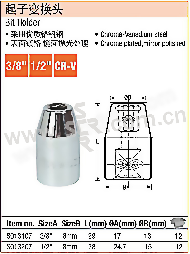SHEFFIELD/钢盾 起子变换头 S013007 6.3MM×六角6.3MM 1个