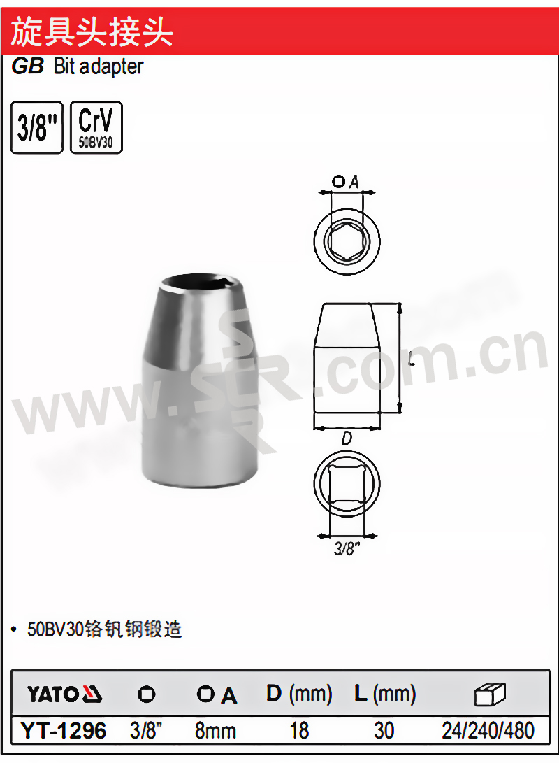 YATO/易尔拓 旋具头接头 YT-1295 1/2"×HEX8mm 1个