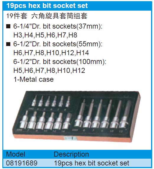 6-1/4“批头套筒(37mm) H3 H4 H5 H6 H7 H8 6-1/2“批头套筒(55mm): H6 H7 H8 H10 H12 H14 6-1/2英寸博士钻头套筒(100mm) H5 H6 H7 H8 H10 H12 1金属盒
