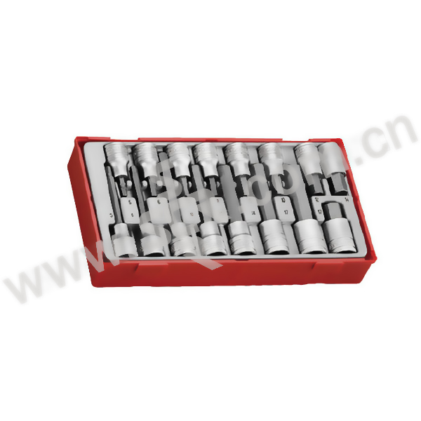 ·组套内包含9颗55mm长六角起子头套筒及6颗100MM长六角起子头套筒及1颗115MM长长六角起子头套筒。
