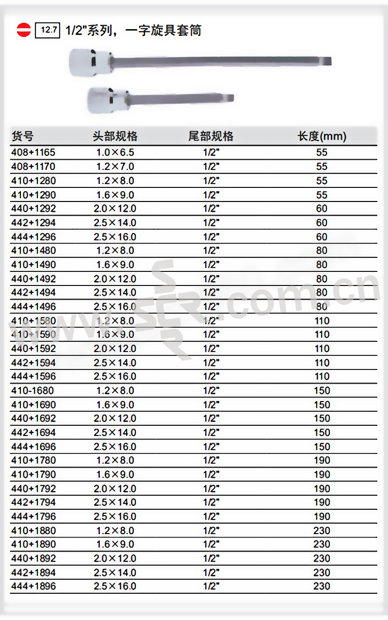 GENIUS/天赋 1/2"一字旋具套筒 408+1165 1.0×6.5mm×1/2"×55mmL 1个