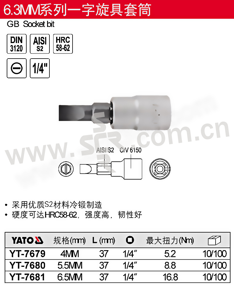 YATO/易尔拓 1/4" 一字旋具套筒 YT-7679 4×37mm 1支