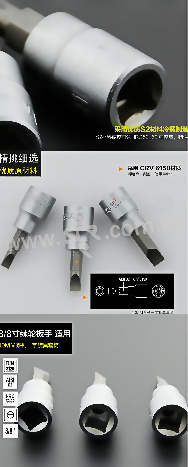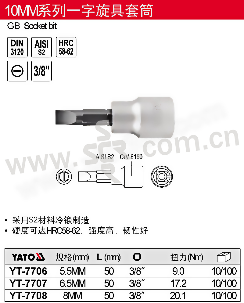 YATO/易尔拓 3/8" 一字旋具套筒 YT-7706 5.5×50mm 1支